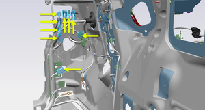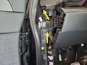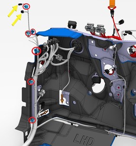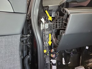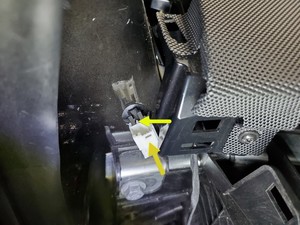 2 个连接器,将左侧饰板与车身保持一定距离,以便够到摄像头连接器;固定锁片