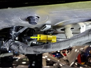 调整座椅位置,以便能够着座椅底部下方,然后从座椅控制器上断开左侧车身线束