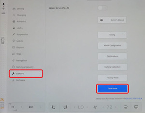 操作如下:center display > Controls > Service > ''Jack Mode'’