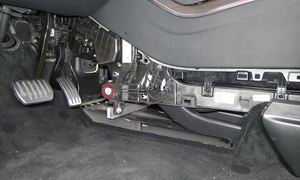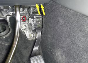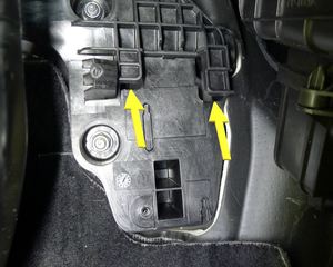 1 个套子,1 个卡子,1 个固定销,1 个螺钉,8 mm,1 Nm。安装螺钉前,请先对齐固定销和脚部空间通风口
