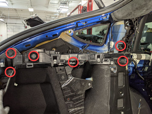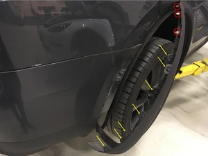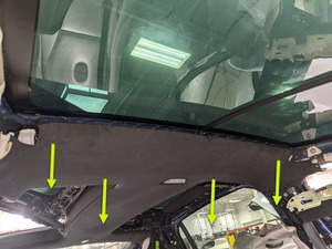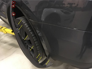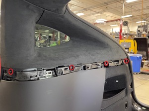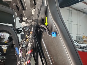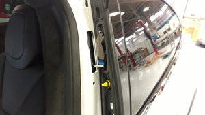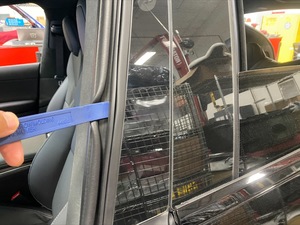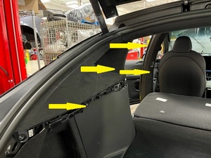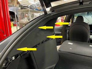 揭下左侧 C 柱下部和门框硬盖板上的遮蔽胶带