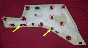 3 个锁片;下部密封件两侧各 1 个,底部 1 个,用于将密封件固定在饰板上