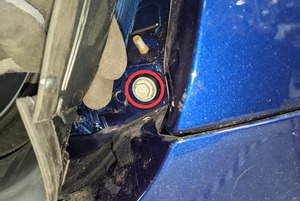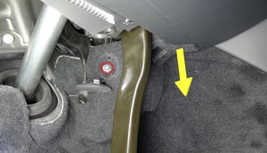 拉起左侧 B 柱饰板下部密封件,然后安装将左侧 B 柱饰板固定到车身的螺钉