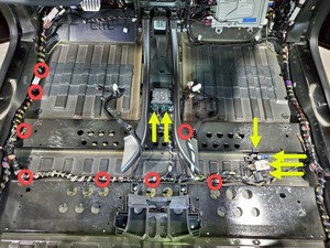 5 个卡子,更换损坏的卡子,将底板后端安装到位并固定卡子
