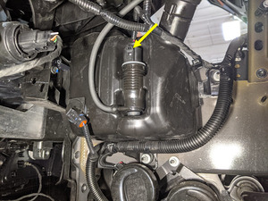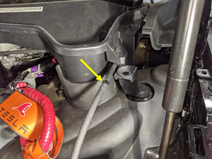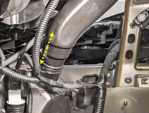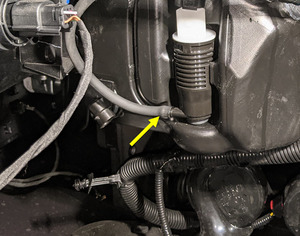 - 将储液罐清洗器软管从前围篦板的直管接头处断开