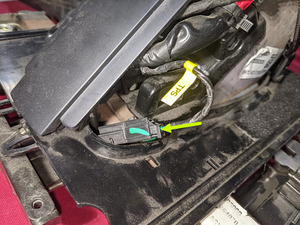 - 断开左侧第二排座椅外侧滑轨位置传感器电气连接器。