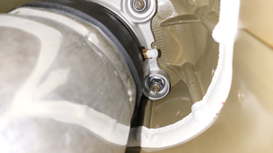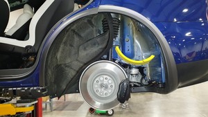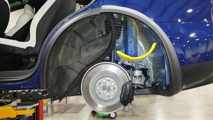注取下卡子后,将轮拱内衬放在制动盘背板上,将其用作工作空间。