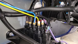 注将空气悬架管线从超级横梁后面向空气悬架阀块移动。