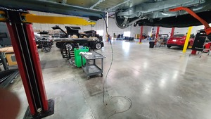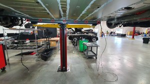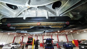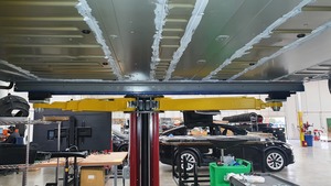 - 用双柱举升机举升并支撑车辆。请参阅 举升车辆 - 双柱举升机。