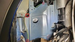 紧固后副框架后方连接后空气悬架管线的卡子(3 个)。