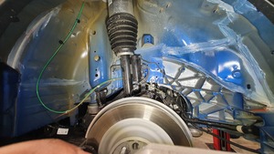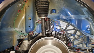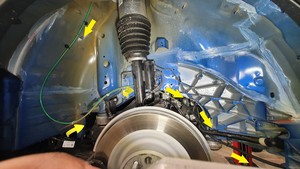 注将后空气悬架管线通过轮拱罩向两个后支柱方向移动。