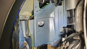 注将超级横梁下的后部空气悬架管线向右侧前轮拱罩处移动。