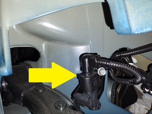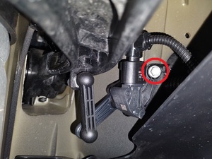 拆下将左前行驶高度传感器固定到车身的螺栓,然后从车上拆下传感器。