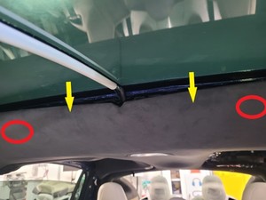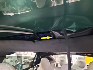 - 松开将顶篷前缘连接到车辆上的卡子(2 个),然后使用可充气气囊降低顶篷前缘。