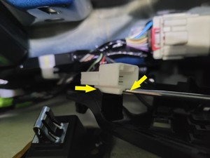 将后视镜线束安装到车辆上,然后固定将线束连接器固定到车辆上的锁片。