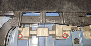 松开将第二排左侧座椅内联线束支架连接到第二排左侧前底板支架上的锁片(2 个)。