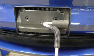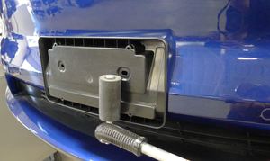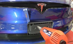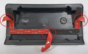 - 将前牌照支架按压到前饰板上,请注意确保支架与双面胶带紧密贴合。
