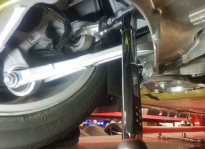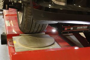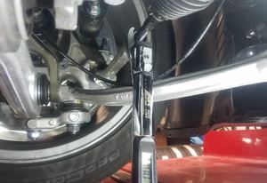 注使用 yoke 方向盘气泡水平夹具确认前轮是否直指前方。