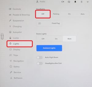 - 在触摸屏上,点击Suspension,然后将“行驶高度”设置为Low。