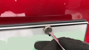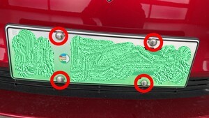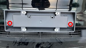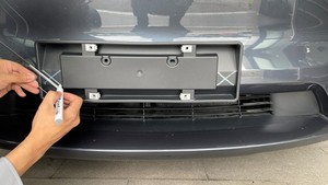 - 使用油性记号笔标记车牌支架两侧的中心孔(2 个)。