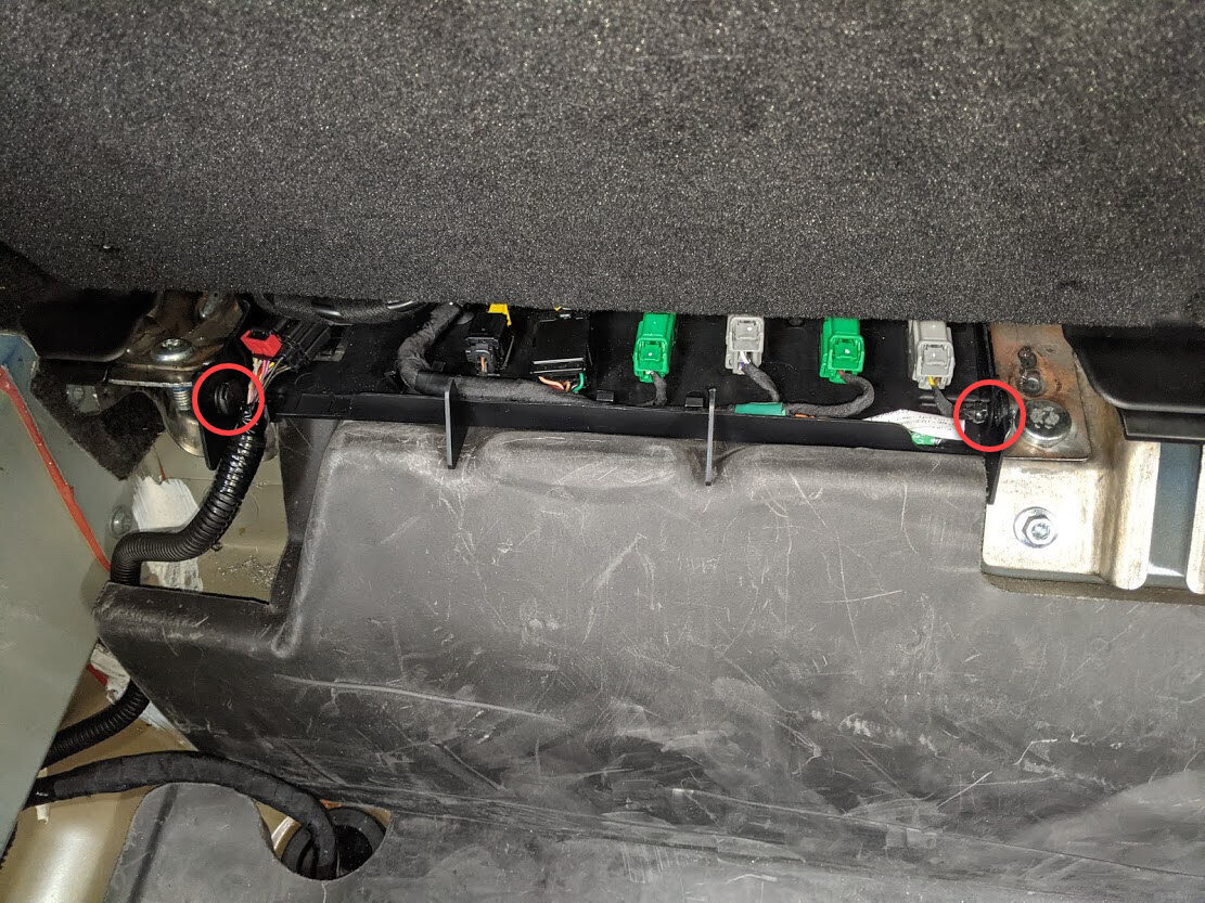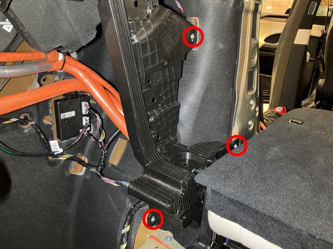 注9x bolts, T40, 27 Nm, Use a T40 socket with 8mm wrench to loosen the lower 2 bolts to avoid removal of 3rd row seat frame, Then use hex bit ratchet to remove bolts fully, All other bolts can be removed with 1/4in. Dr. ratchet and 1/4in. Dr. T40 socket