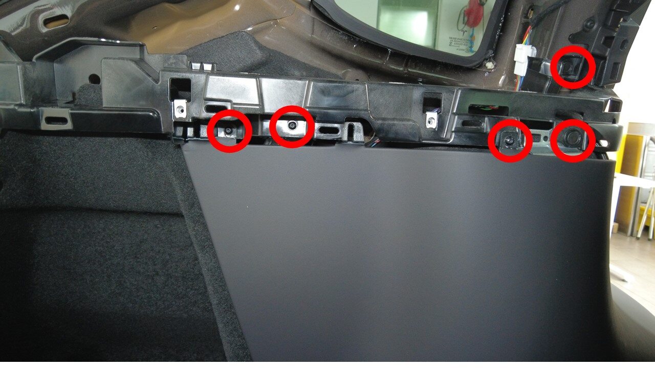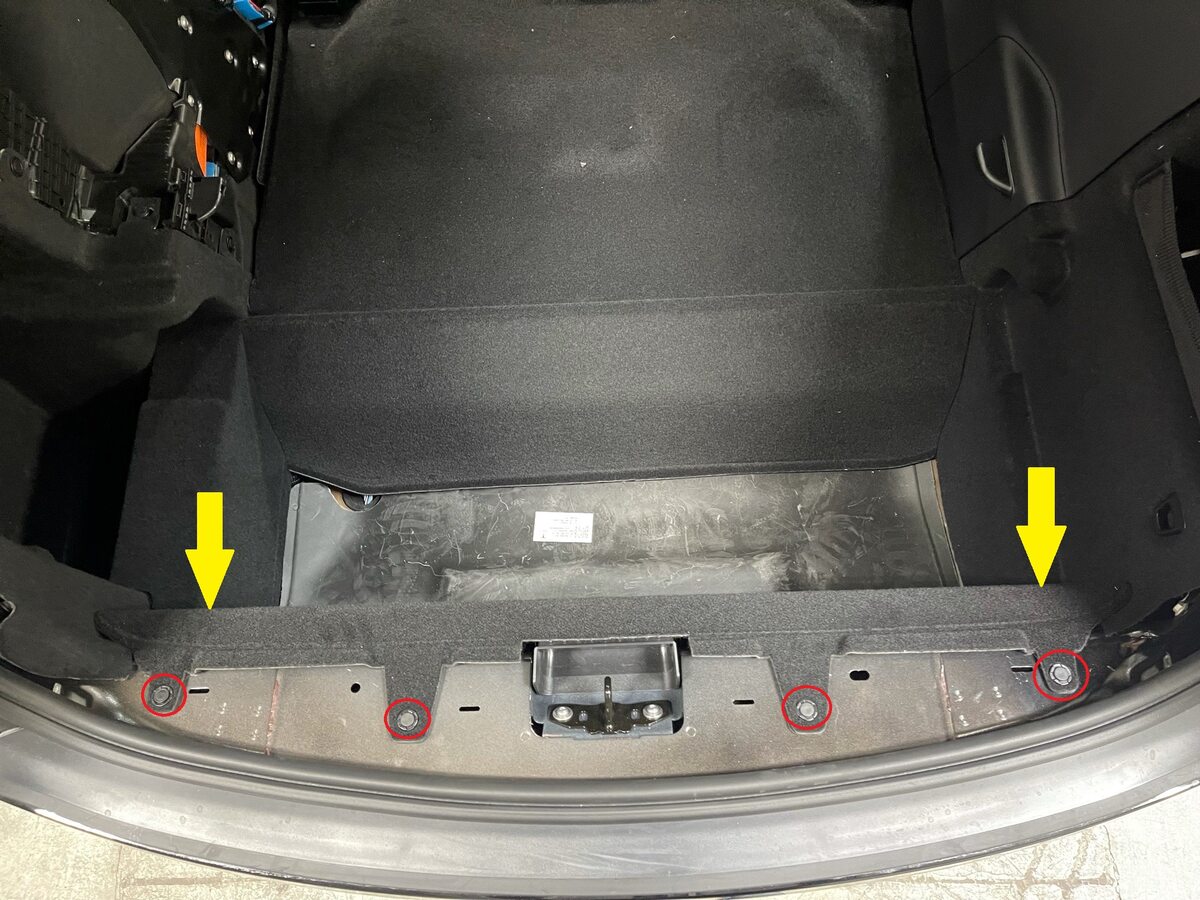 注4x clips, 2x patch bolts, T25, 2.5 Nm, Make sure to seat liftgate seal properly, Install new patch bolts
