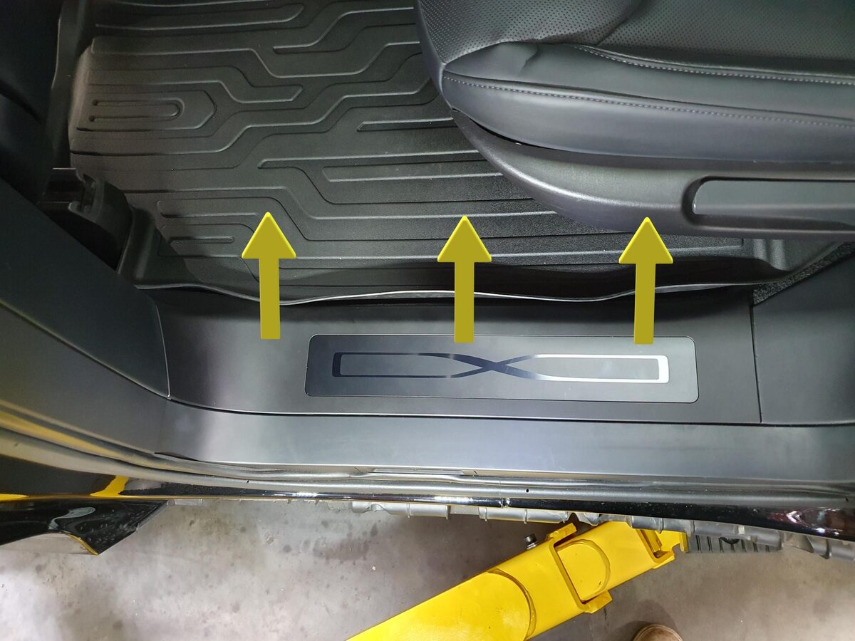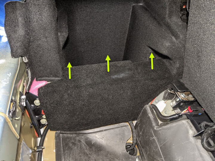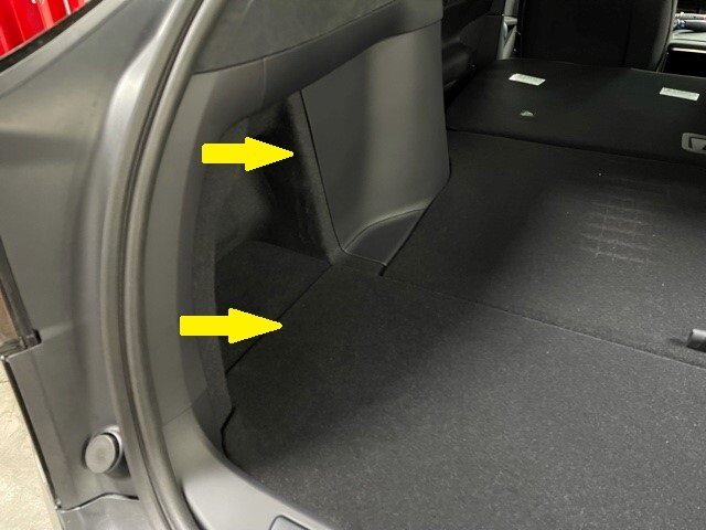 注2x securing tabs, Feed cushion harness's below 3rd row seat backs
