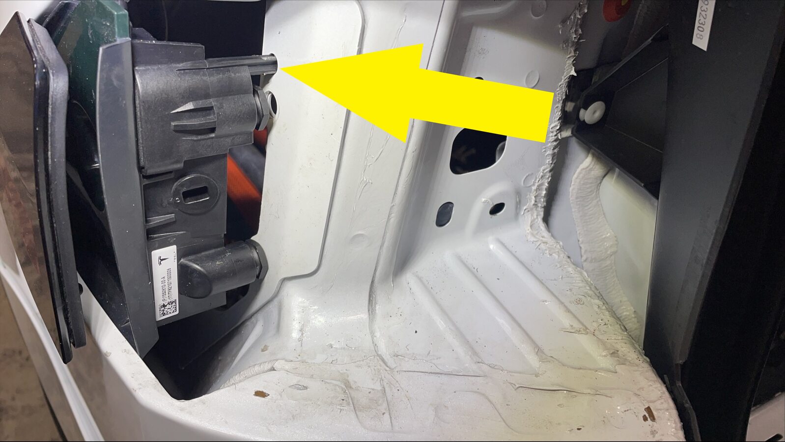 注3x datums, Guide harness in, Maneuver door assembly and motor in from rear of vehicle, Secure single datum onto body