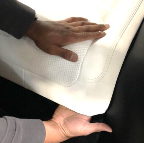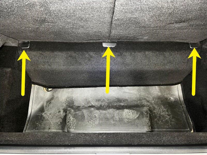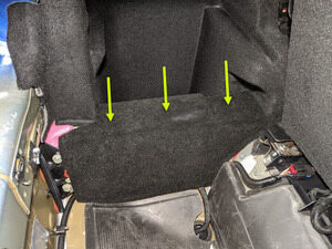 注2x clips, While pushing down on cushion, feel for rocket clips and disengage locking tabs, Clips located on both ends of seat cushion, Feed cushion harnesses below 3rd row seat backs, Place cushion on protected surface