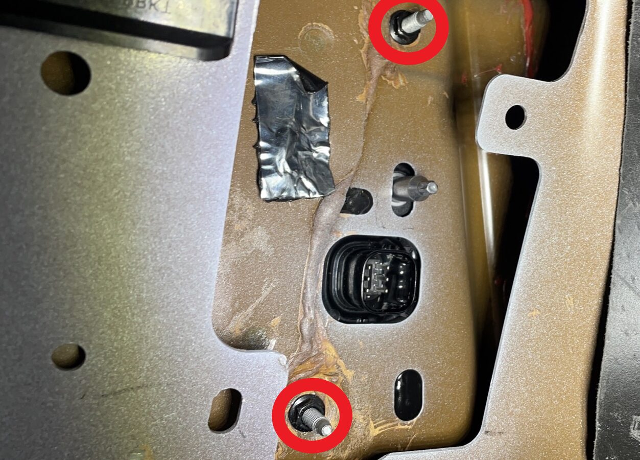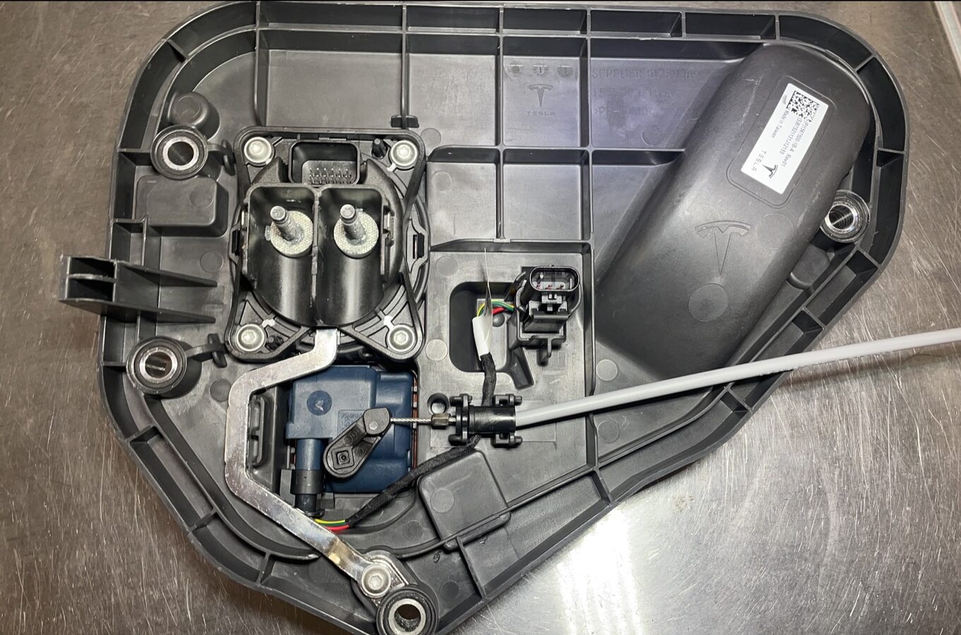 注4x bolts, 10mm, 7 Nm, 2x datums, Note the charge port is bolted to the charge port door and lines up with 2 datums