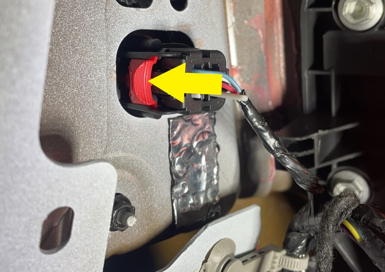 注1x connector, Take note of harness routing, Pull red locking tab outwards to release lock, pull again to release connector