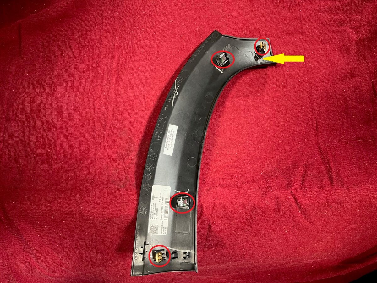 注4x push clips, 1x connector, Place Clip into trim tool to aide installation of lower clip.