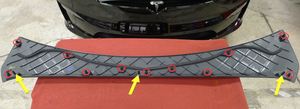 6 个卡子,1 个锁片;松开卡子,然后将边框滑向车辆前部,以将其松开