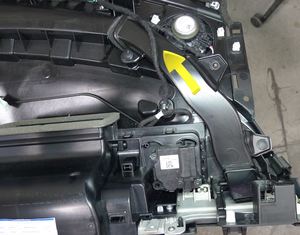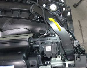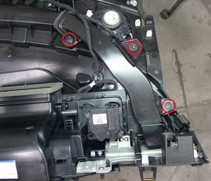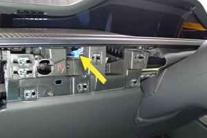 1 个连接器,2 个固定销;向内侧旋转支柱以够到连接器;向上松开定位销并从仪表板分总成取出