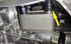 注在 O 型环上薄薄涂抹一层干净的 KAF 1 变速箱油;安装时请勿挤压 O 型环或使其变形;确保热交换器完全就位;请勿使冷却液进入 PRDU 机油通道;防止交叉污染。
