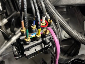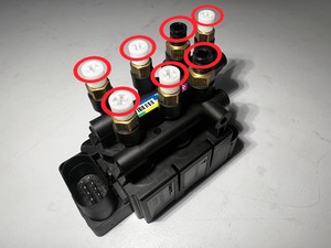 将前后空气弹簧模块管路(4 个)装入空气悬架阀块。
