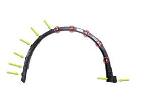 现在前翼子板饰板和轮毂整流罩构成一个总成。本程序详细介绍维修该总成的步骤。