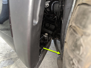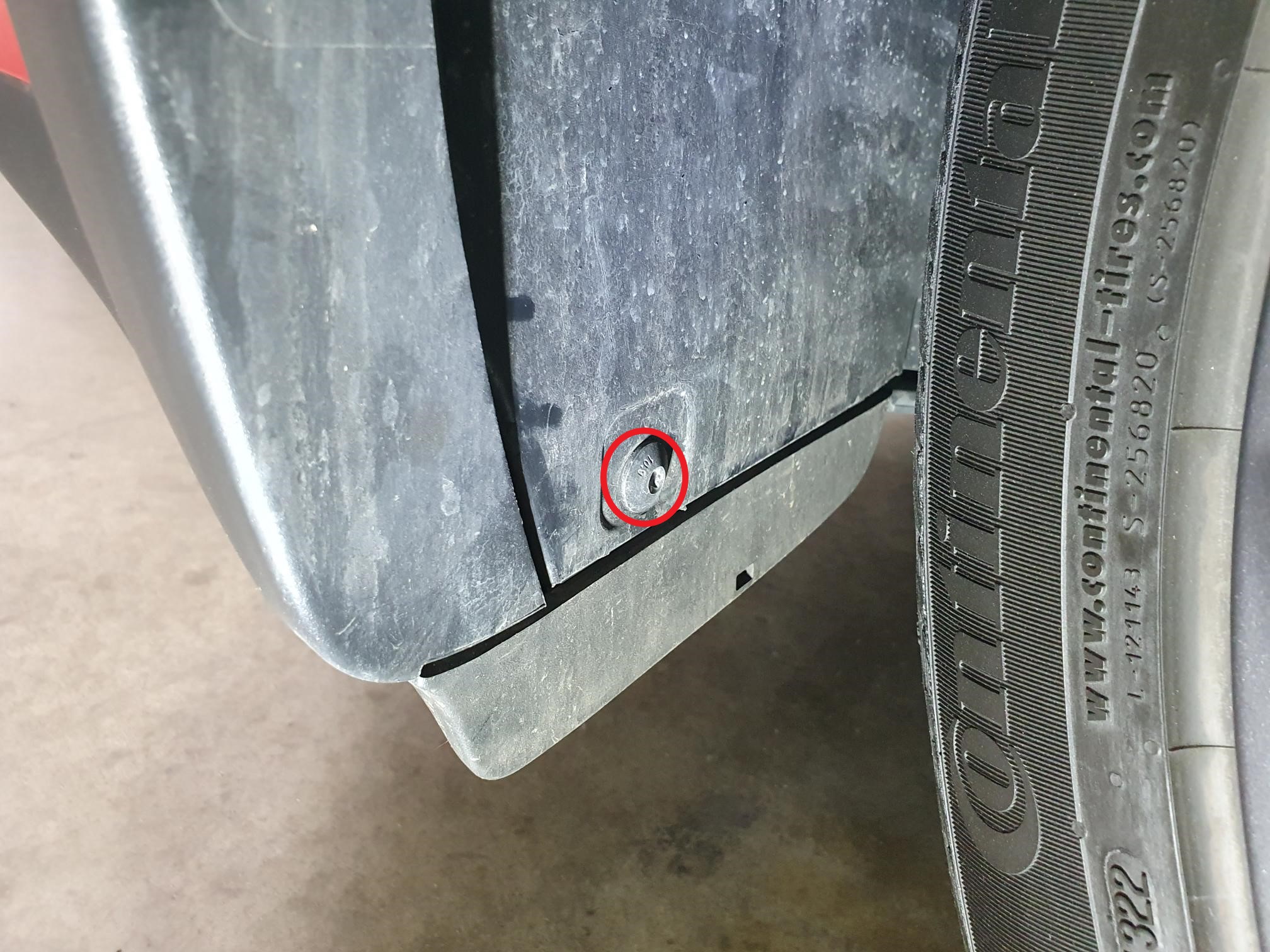 HW3 仅限特定车辆:拆下用于将左前轮拱内衬前端下部固定到车辆上的卡子(2 个),然后将内衬从左前翼子板饰板上拉离。