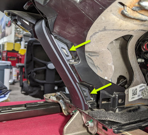 注11 个卡子,1 个连接器。从饰板顶部开始,然后向下。请留心开关线束,不要扯坏饰板