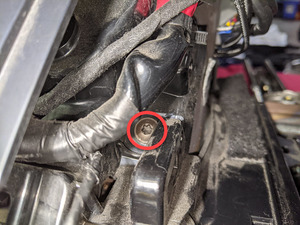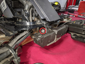 拆下用于固定左侧第二排单座椅前端底部撑杆的螺钉