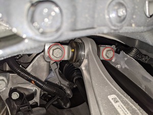 拆下将左后上尾连杆固定到转向节的螺栓。