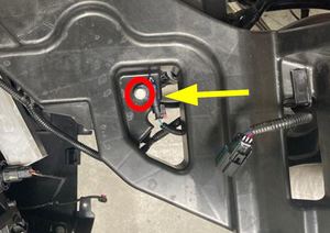安装将左侧加速传感器固定到左前照灯支架顶部的螺栓。