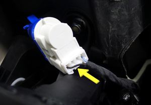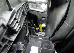 1 个连接器,2 个固定销,向内侧旋转立柱以够到连接器,将固定销向上从仪表板分总成中取出