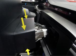 3 个锁片,向外滑动显示器,直到护罩完全离开仪表板和支撑,松开底部锁片并向上拉
