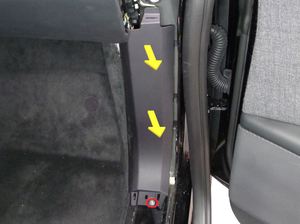 2 个卡子,3 个固定销,从上部 A 柱和仪表板分总成上松开卡子,提起 A 柱中饰板将其与 A 柱下饰板分离