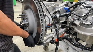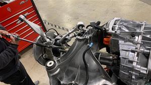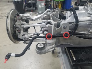 从后副框架上拆下左侧后转向节和左侧后半轴。