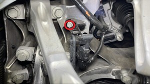- 拆卸将左后止推杆固定到左后转向节的螺栓。