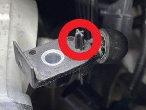 将左侧行驶高度传感器安装到后副车架上,然后安装将传感器固定到副车架的螺栓。