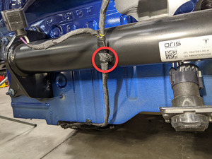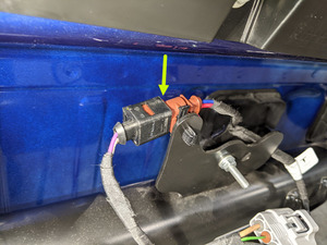 - 将左侧车身线束连接器连接到拖车挂钩总成跳线线束上。