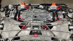 - 拆卸后副车架总成。请参阅副车架总成 - 后(Plaid 版)(拆卸和安装)